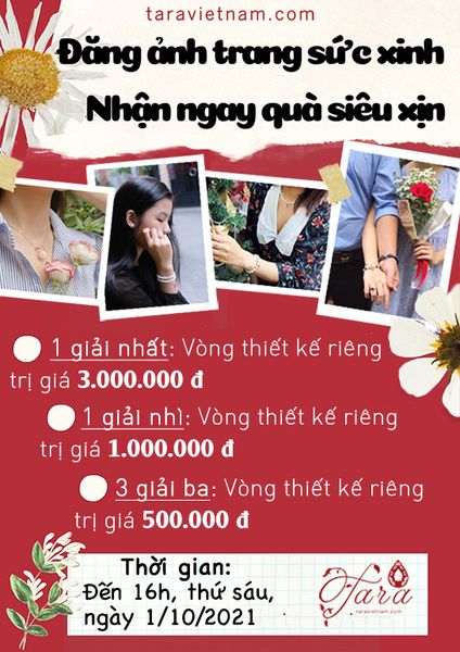 𝐁𝐮̛𝐨̛́𝐜 1: Đăng hình trang sức hoặc sản phẩm mà bạn từng mua ở Tara dưới phần BÌNH LUẬN kèm vài lời chia sẻ về sản phẩm hoặc dịch vụ của Tara, (nếu bạn đã đặt mua mà đang chờ giao cũng tham gia được nhen).