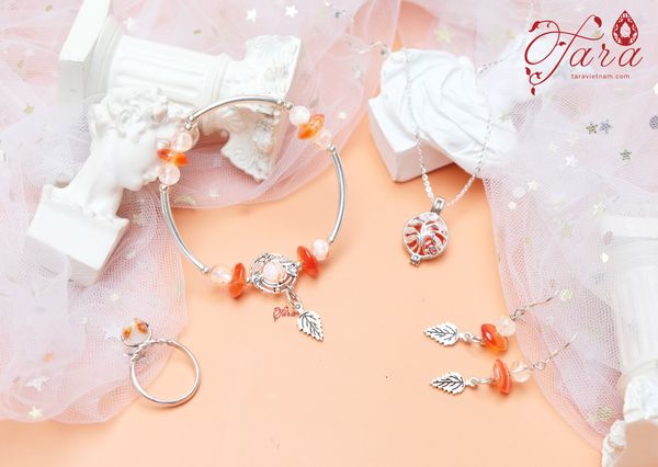 Bộ trang sức đá Mã Não đem lại vẻ dịu dàng, trẻ trung nhưng không kém phần tinh tế cho người đeo