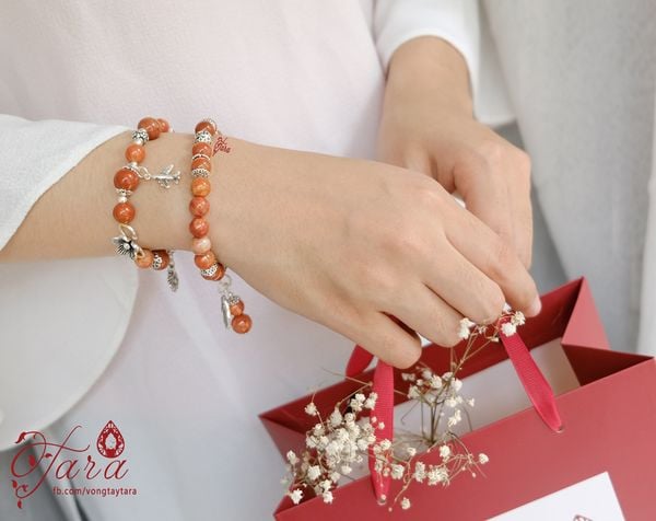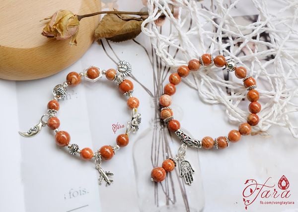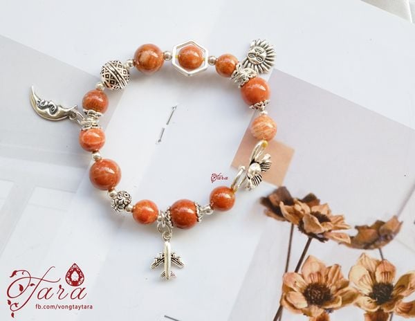 Vòng tay San Hô Đỏ Hoá Thạch mix Charm Bạc Thái 925