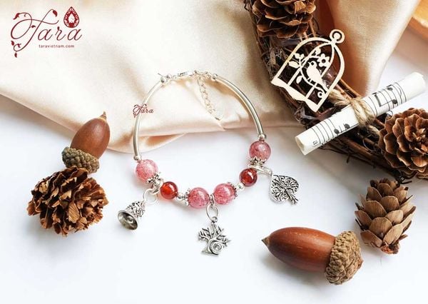 Vòng tay Thạch anh dâu hồng mix Garnet và charm bạc trẻ trung, tinh tế