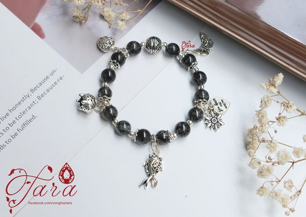 Vòng tay Thạch Anh Tóc Đen mix Charm bạc Thái 925
