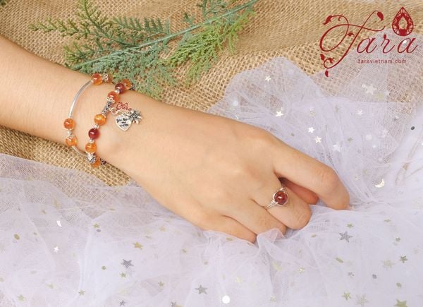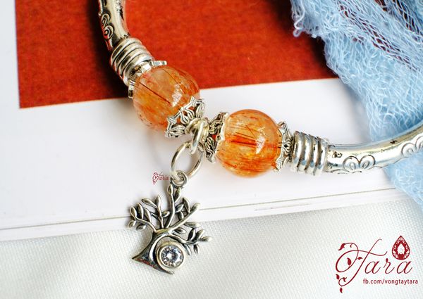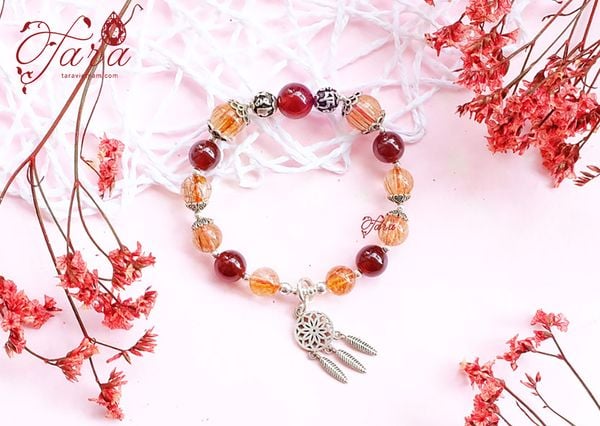 Chiếc vòng thạch anh tóc đỏ mix charm bạc nữ tính, trẻ trung trên tay nàng
